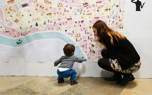 Une carte interactive qui rend la salle dâattente chaleureuse et ludique. En tendant lâoreille, lâusager.e (re)dĂ©couvre son quartier.